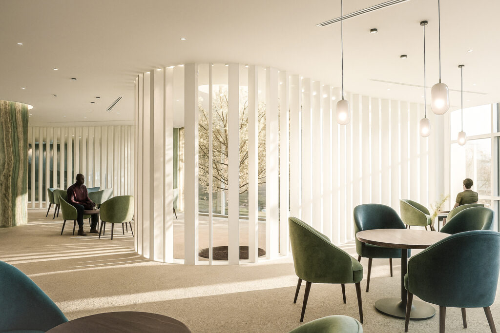 TA OfficesTA Offices Numbers & Facts Location: Angola City: Luanda Client: Private Year: 2011 Area: 730 m2 Status: Project Theme: Interior design Program: Offices Credits Architecture Team: Bruna Serralheiro, Sara Faria, Simone Lopes The African native tree baobab inspires the TA Offices Interior Design concept: bring nature to the interior space. bring nature to the interior space. The curvilinear shape of the building defines the division between spaces. A fluid path connects workplaces with the lounge allowing magnificent views over Luanda’s bay to everyone. This path is created by an organic wall made of vertical wooden planks of American Walnut wood, which can also be used as bookshelves. As for the finishing works we have chosen natural stone and wood painted in white. WHite, green and copper are the predominant colours, representing nature and the African forest. Related projects Star Jewellery Read More PRIVATE LOUNGE | TORRES JOALHEIROS Read More Mukitixi Lodge Read More Air Panoram Read More