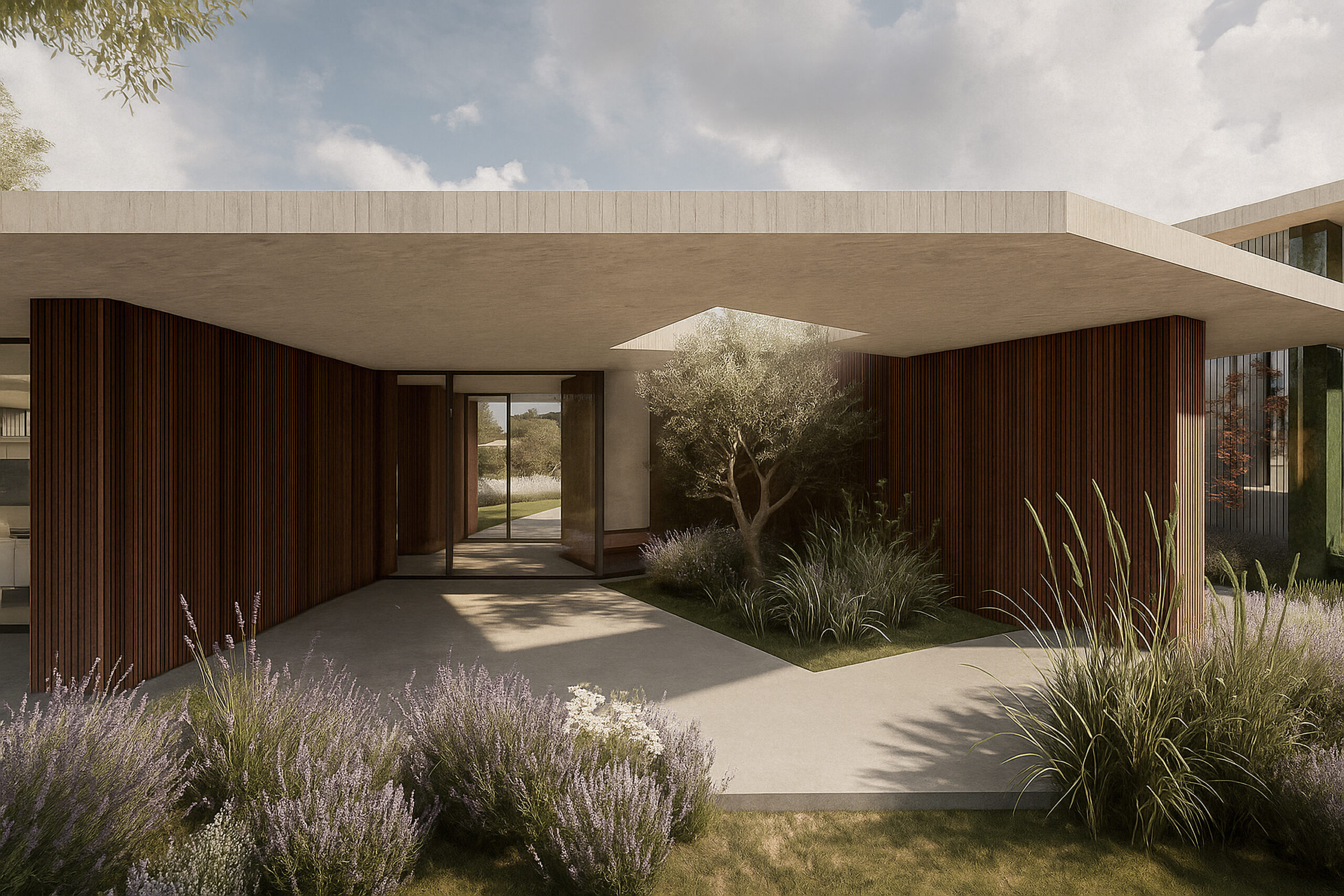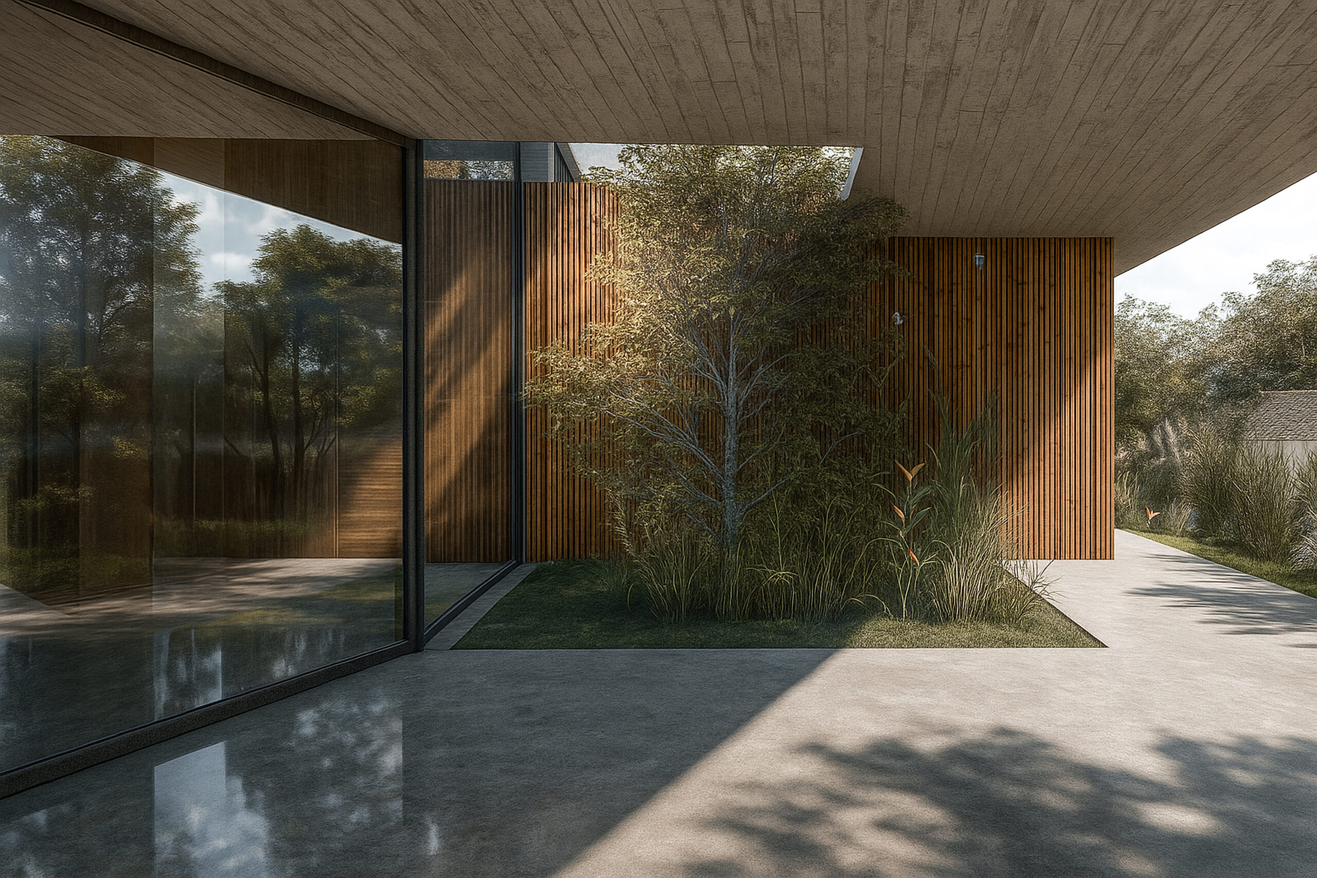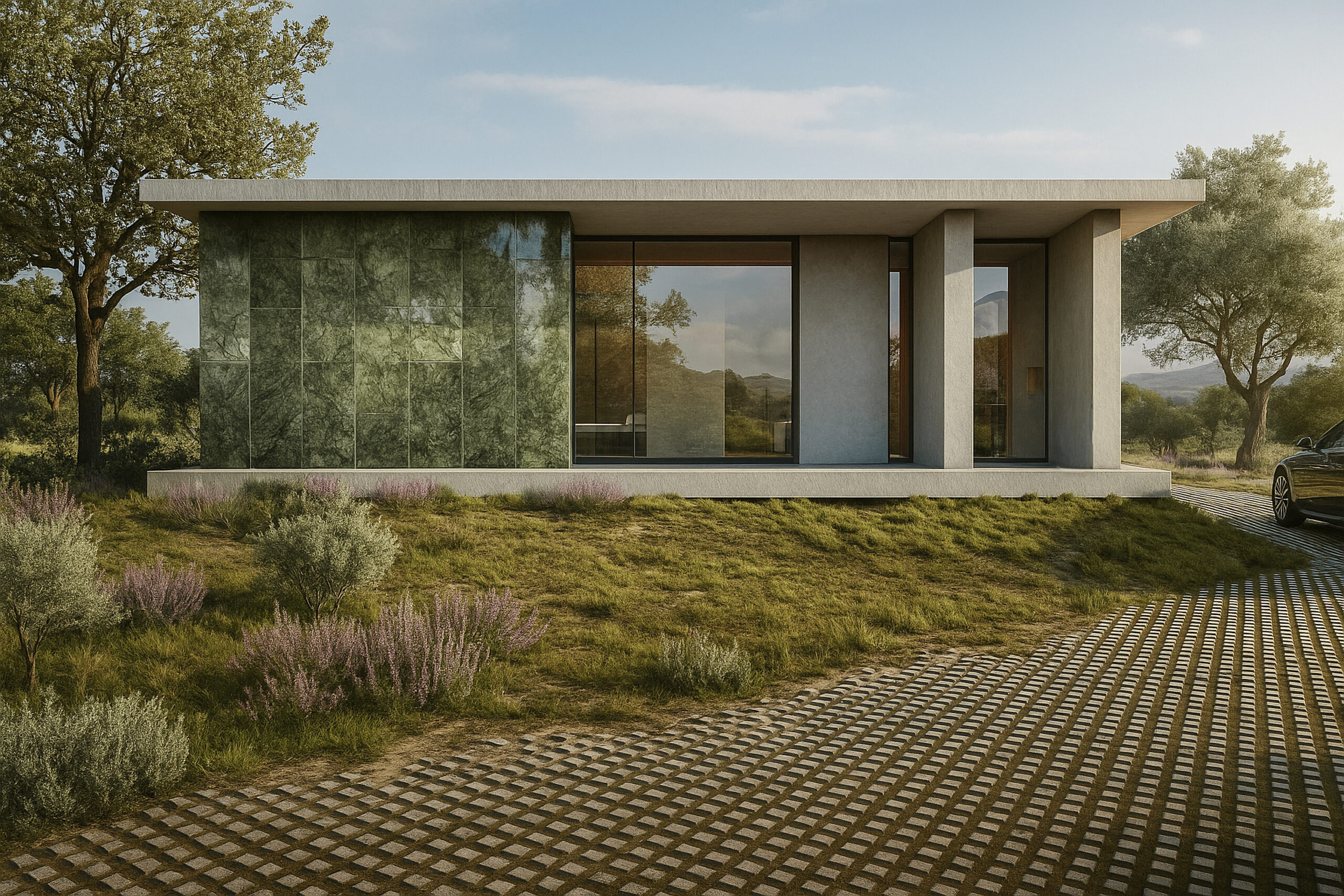 Bravo house is organized in a way that promotes social, visual and spatial interaction. Guatemala green marble and American Walnut wood establish contrasts and parallelisms with the colours of the mountains. The glass facades are protected by cantilivered slabs that ensure thermal comfort and extend the space of the house outside.